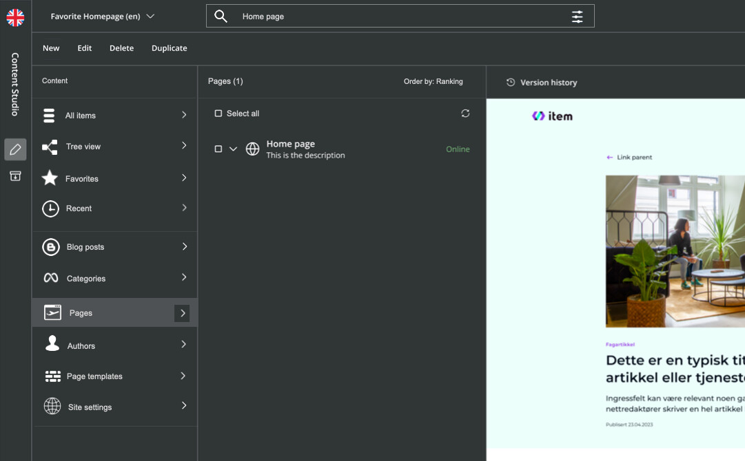 New Content Studio navigation